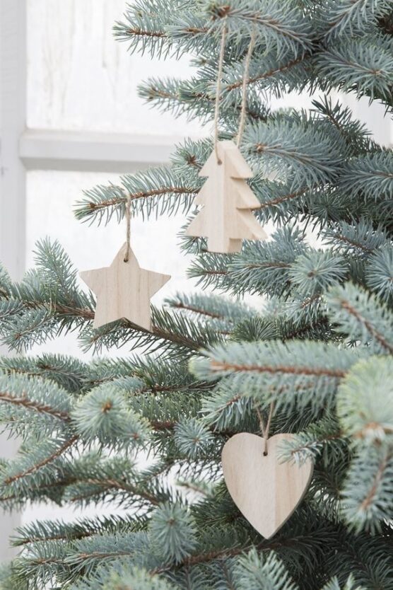 Dress it up with simple wooden ornaments, pinecones, and dried orange slices, going for a less-is-more vibe; minimal string lights add a gentle glow that won’t overpower the natural beauty. The overall look is organic and relaxed, each detail feels intentional but not fussy.
