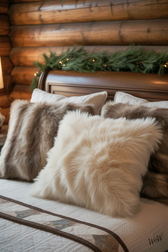 Faux fur pillows crank up the coziness factor-they look plush and inviting, especially in cream and soft brown tones that mimic real fur, and they’re guilt-free. Layer a mix of long and short faux fur textures on your bed, focusing on subtle color variations for that authentic, just-out-of-the-woods appeal.