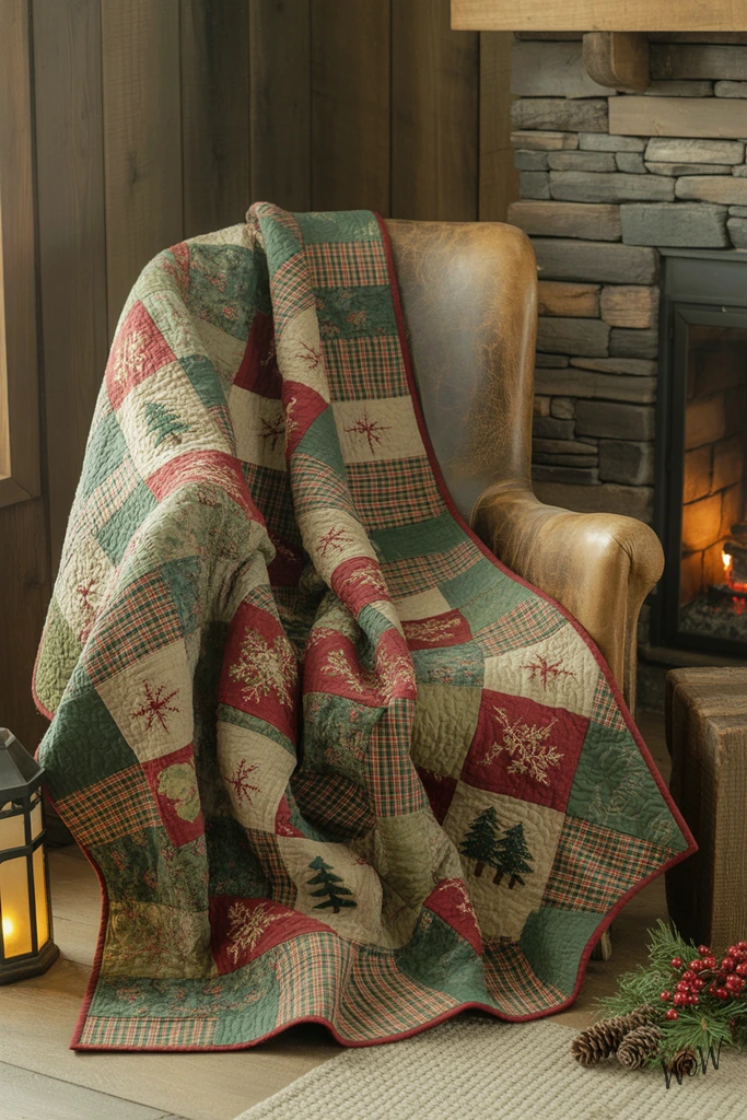 Patchwork quilts crank up the cozy factor, especially when you pick ones in deep reds, forest greens, and classic plaids. Drape them over a worn leather armchair, letting their handcrafted charm show off those old-school pine tree and snowflake patterns-no need to be fussy, a casual toss looks best.