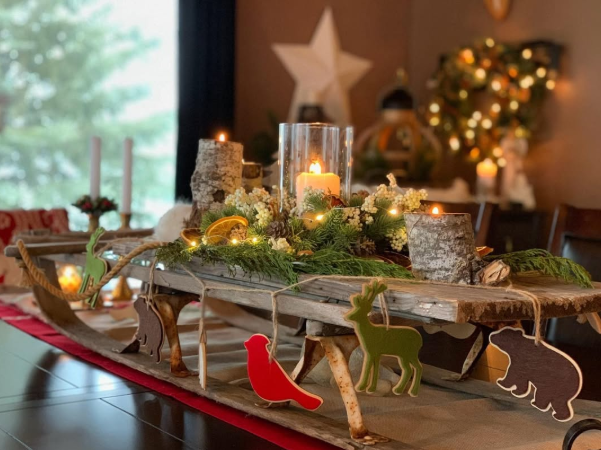 A vintage wooden sled will set a nostalgic, cozy scene, especially when it’s propped up casually against a cabin porch. For a real holiday statement, wrap the sled’s handle and rails with a thick evergreen garland, tucking in a few pinecones and scattering vintage glass ornaments along the length.